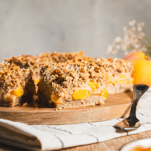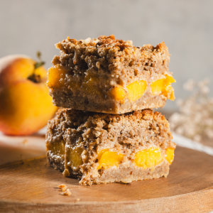 Dulce, crocante y con aroma a hogar: este Crumble de durazno combina una masa integral con semillas y un relleno jugoso de fruta especiada. Ideal para acompañar con helado o crema.