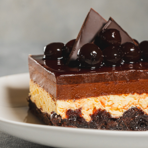 Chocolate profundo, crema sedosa y un toque cítrico vibrante:esta torta choco-naranja es pura armonía en cada bocado.